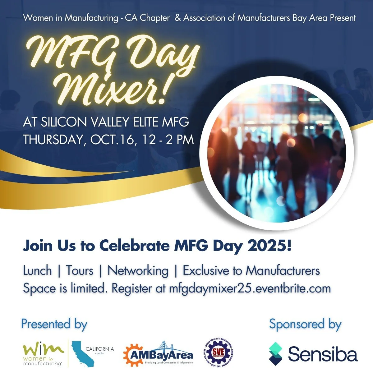 Applied Engineering is proud to join fellow manufacturers and industry leaders at the 2025 MFG Day Mixer, hosted by Women in Manufacturing – California Chapter and the Association of Manufacturers Bay Area (AMBayArea). This year’s event takes place on Thursday, October 16th, from 12 to 2 PM at Silicon Valley Elite Manufacturing.